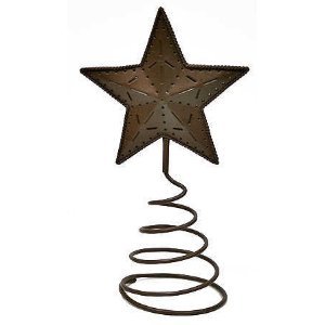 13-1/2" Tall Rustic Metal Star on a Coil Spring Base - Tree Topper or Shelf Sitter